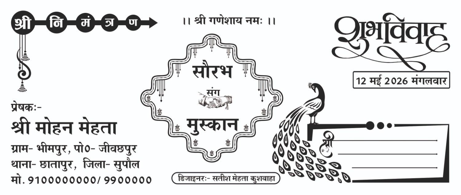•Hindu wedding card front and back printing black and white metter design cdr file