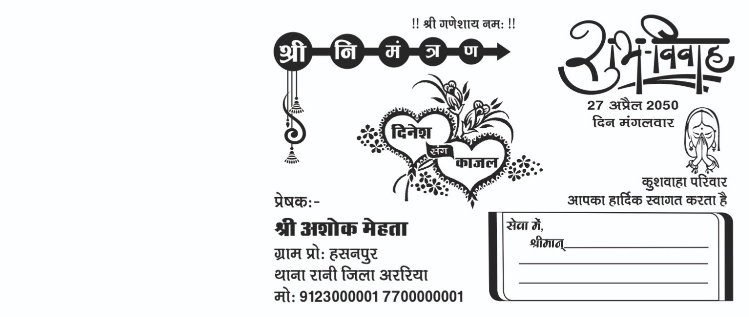 •Fancy hindu wedding card front and back printing black and white metter design cdr file