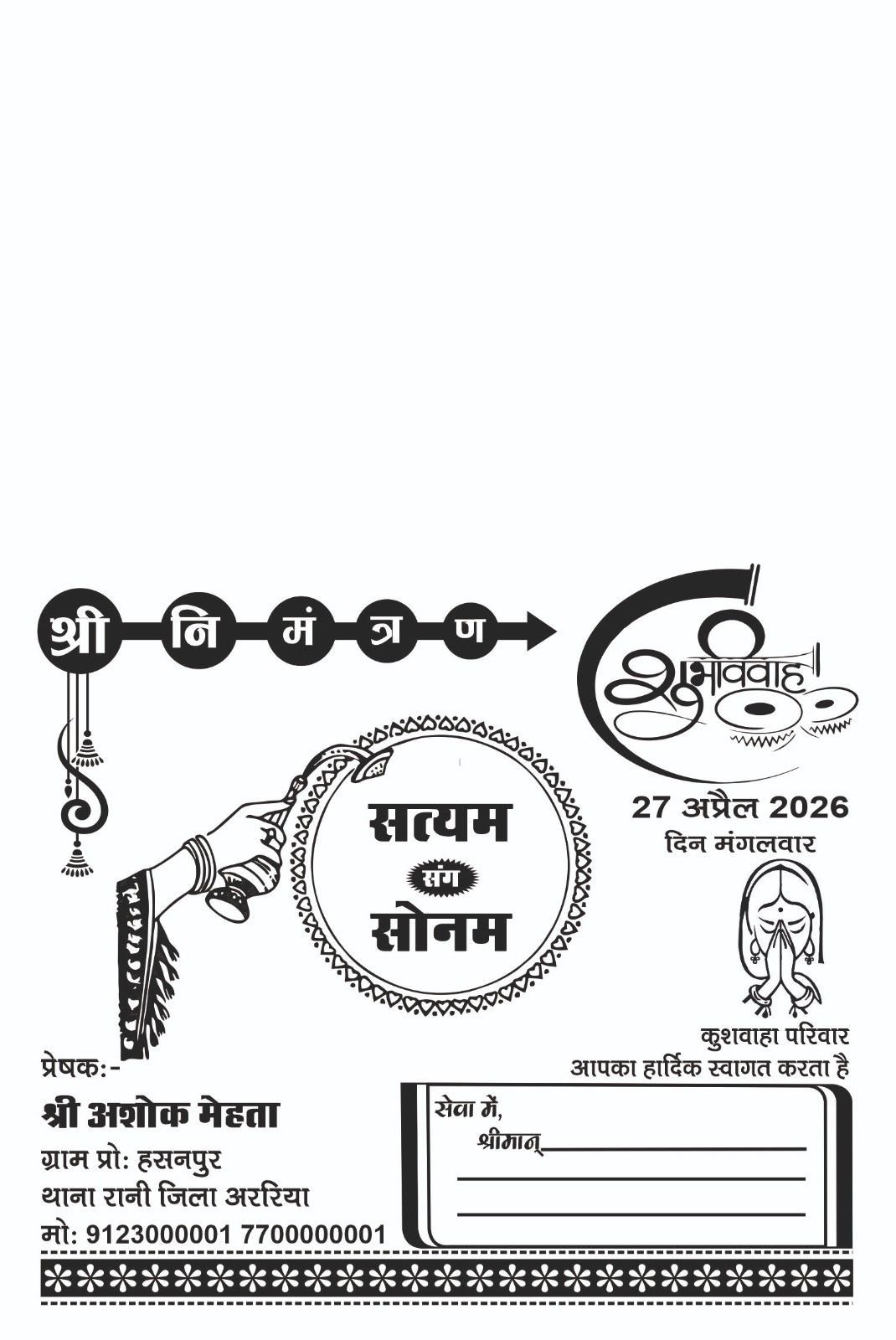 •Hindu wedding card front and back printing black and white metter design cdr file